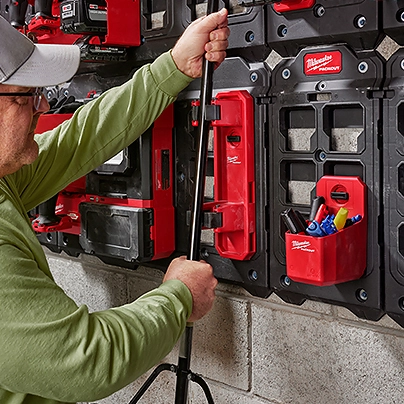 Our PACKOUT™ Long Handle Tool Holder delivers the most secure mounting when paired with PACKOUT™ Wall Plates, strongly holding the PACKOUT™ solution mounted to the wall. This Long Handle Tool Rack is optimized to store outdoor power equipment like QUIK-LOK™ Attachments, long-handled tools, and more. Quick access tool clamps make it easy to retrieve and store your long-handled tools, while the anti-slip rubber grips prevent tools from falling. MILWAUKEE® PACKOUT™ is the industry's most versatile and durable modular storage system allowing you to fully customize your shop.