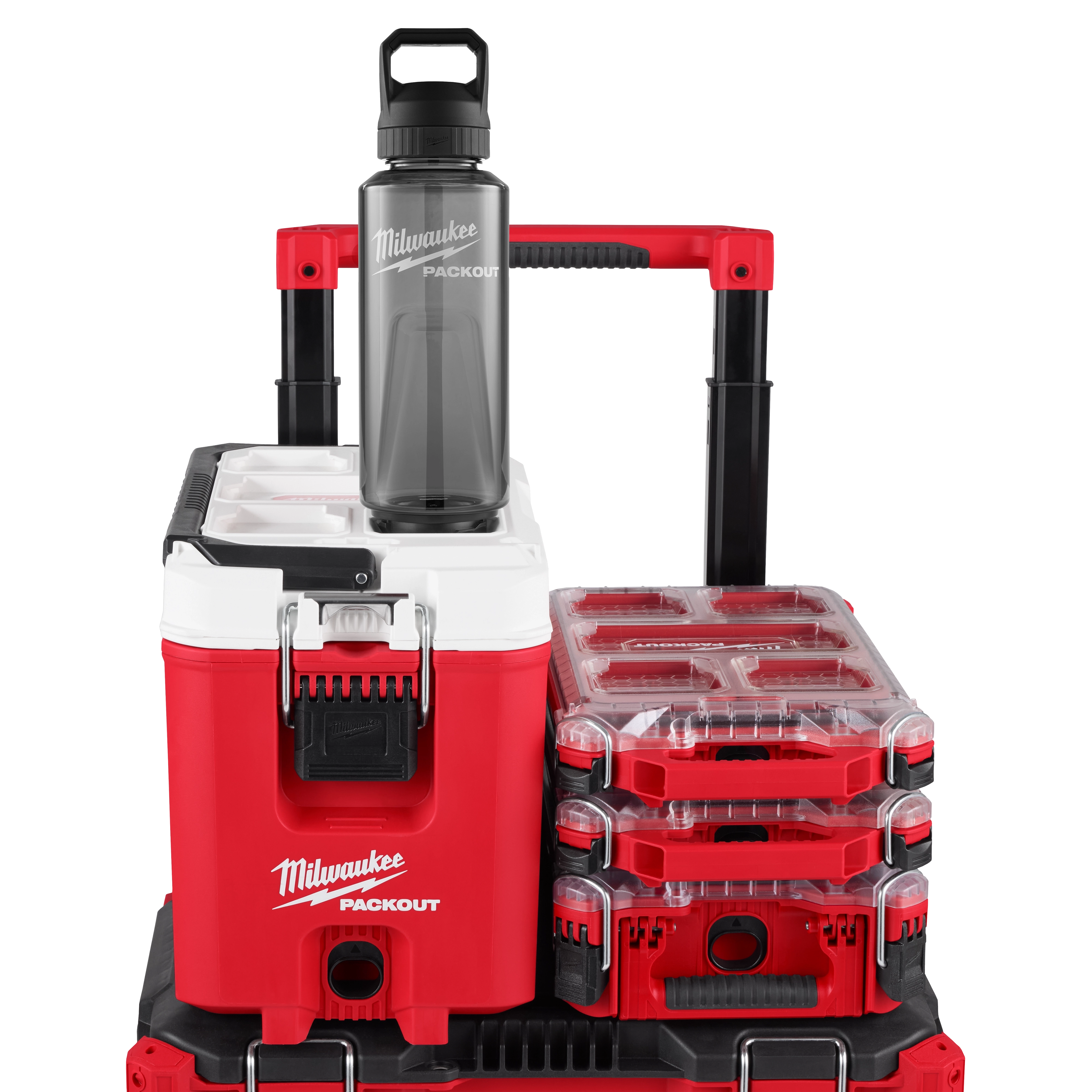 Our PACKOUT™ 48oz Bottle with Chug Lid features twist-to-lock PACKOUT™ Connectivity so you can attach your bottle to the top of PACKOUT™ solutions, allowing for secure drink storage on the jobsite. Each bottle comes with a leakproof chug lid to prevent spills while transporting PACKOUT™, and dishwasher safe for easy cleaning. The impact-resistant body is built and engineered to withstand the harshest jobsite environments. MILWAUKEE® PACKOUT™ is the industry's most versatile and durable modular storage system.