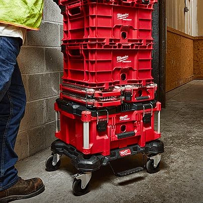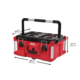 Our PACKOUT™ modular storage system is the industry's most durable and versatile storage system. The PACKOUT™ large tool box is constructed with impact resistant polymers and metal reinforced corners so it can withstand harsh jobsite environments. The tool storage box connects with all other PACKOUT™ system components via integrated locking cleats and features a 100 lbs of weight capacity. An IP65 rated weather seal protects your tools and accessories from rain and other jobsite debris. Interior organizer trays allow you to keep equipment organized to fit your needs. A carry handle and reinforced hinges ensure the large tool box is easily transportable wherever you need it. Our PACKOUT™ modular storage allows you to customize and build your own storage system to easily transport and organize your tools and accessories.