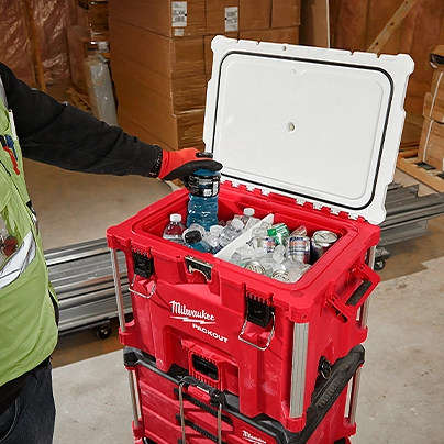 Our PACKOUT™ 40QT XL Cooler keeps food & beverages cold with the ability to hold ice for 5 days. The Milwaukee PACKOUT™ 40QT XL Cooler is constructed with an impact resistant body for ultimate jobsite durability. This jobsite cooler is IP65 rated to withstand harsh environments and jobsite debris. Our PACKOUT™ 40QT XL Cooler features an integrated bottle opener, drain plug, interior storage tray, and food-grade cutting board/divider for maximum versatility on and off the jobsite. As part of MILWAUKEE® PACKOUT™ modular storage system, the PACKOUT™ 40QT XL Cooler allows you to customize your storage system to keep tools and accessories organized. MILWAUKEE® PACKOUT™ is the industry's most versatile and durable modular storage system.
