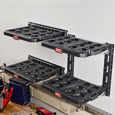 Our PACKOUT™ Shelf for E-Track provides versatile mounting options and attaches to E-Track allowing you to place the Racking Shelf in any location or to any surface E-Track can be mounted. The PACKOUT™ Racking Shelf provides a 50lbs weight capacity with a metal reinforced frame and impact-resistant body. The PACKOUT™ Racking Shelf also has integrated tie-down points for secure attachment during transportation. The PACKOUT™ Modular Storage allows you to customize your storage system for easy transportation and organization of tools and accessories. The MILWAUKEE® PACKOUT™ Modular Storage System is the industry’s most versatile and durable storage system.