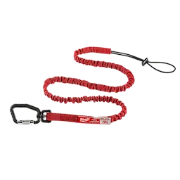 Our 10lbs 54" Extended Reach Locking Tool Lanyard helps you stay productive with the industry's Best Shock Absorption while working at heights. The MILWAUKEE® lanyard is engineered to deliver the best shock absorption, slowing the tool gradually if a drop occurs to reduce the risks associated with dropped tools. The 54" lanyard has 50% longer reach than a standard Milwaukee 36" locking tool lanyard, providing you with better accessibility while working overhead or farther from a tethering point. The Double-Locking carabiner requires two actions to open, ensuring you have a secure connection. The Milwaukee tool lanyard has integrated swivel carabiner reduces twists when using tools and is ANSI/ISEA 121-2018 compliant. The red color coded lanyard allows you to easily identify the lanyard's weight rating. The Milwaukee 54” Tool Lanyard is for use with tools up to ten pounds.