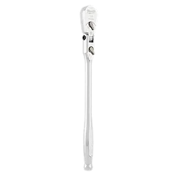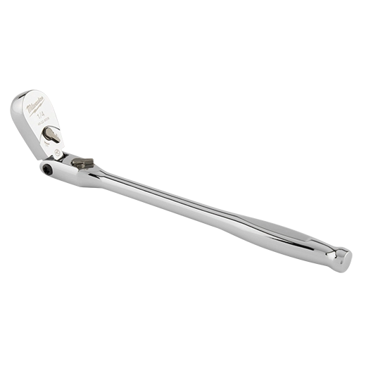 Our 1/4” Drive 9” Flex Head Ratchet with a 4⁰ arc swing provides you with better access and is more adaptable to working in spaces with different angles. The ratchet head can be locked into 7 unique positions or left unlocked for free movement during use. The extended handle length offers you increased leverage for stubborn nuts and bolts while the slim profile and flush directional and locking levers offer more accessibility in tight spaces. The all-chrome finish makes cleaning the MILWAUKEE® extended handle flex head ratchet easy. We back this ratchet with our Mechanics Hand Tools Lifetime Guarantee.
