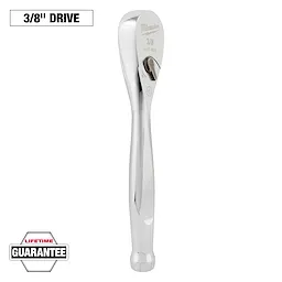 Our 3/8" Drive Ratchet offers 4° of arc swing, allowing access to work in tighter spaces. A slim-profile head and flush directional lever combined with the stubby handle length offer you increased accessibility. The all-chrome finish provides the MILWAUKEE® stubby ratchet with easy cleaning. We back this ratchet with our Mechanics Hand Tools Lifetime Guarantee.