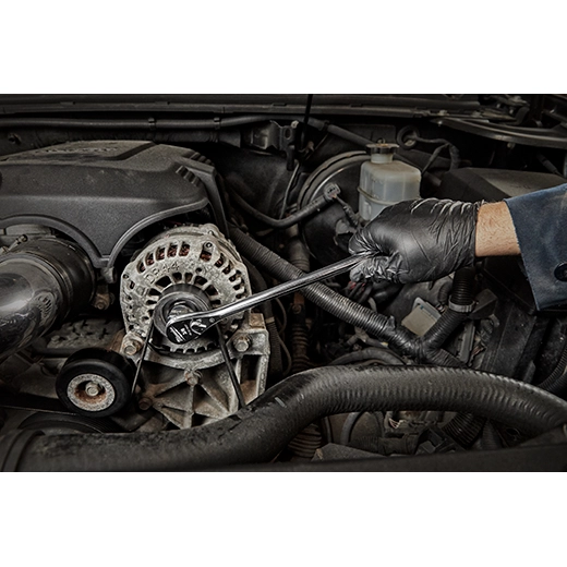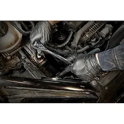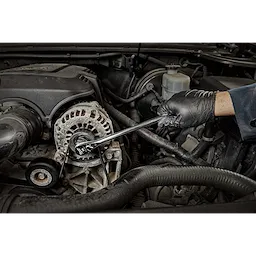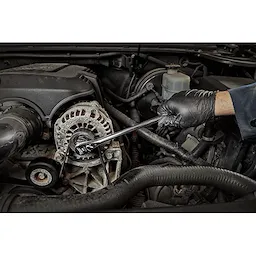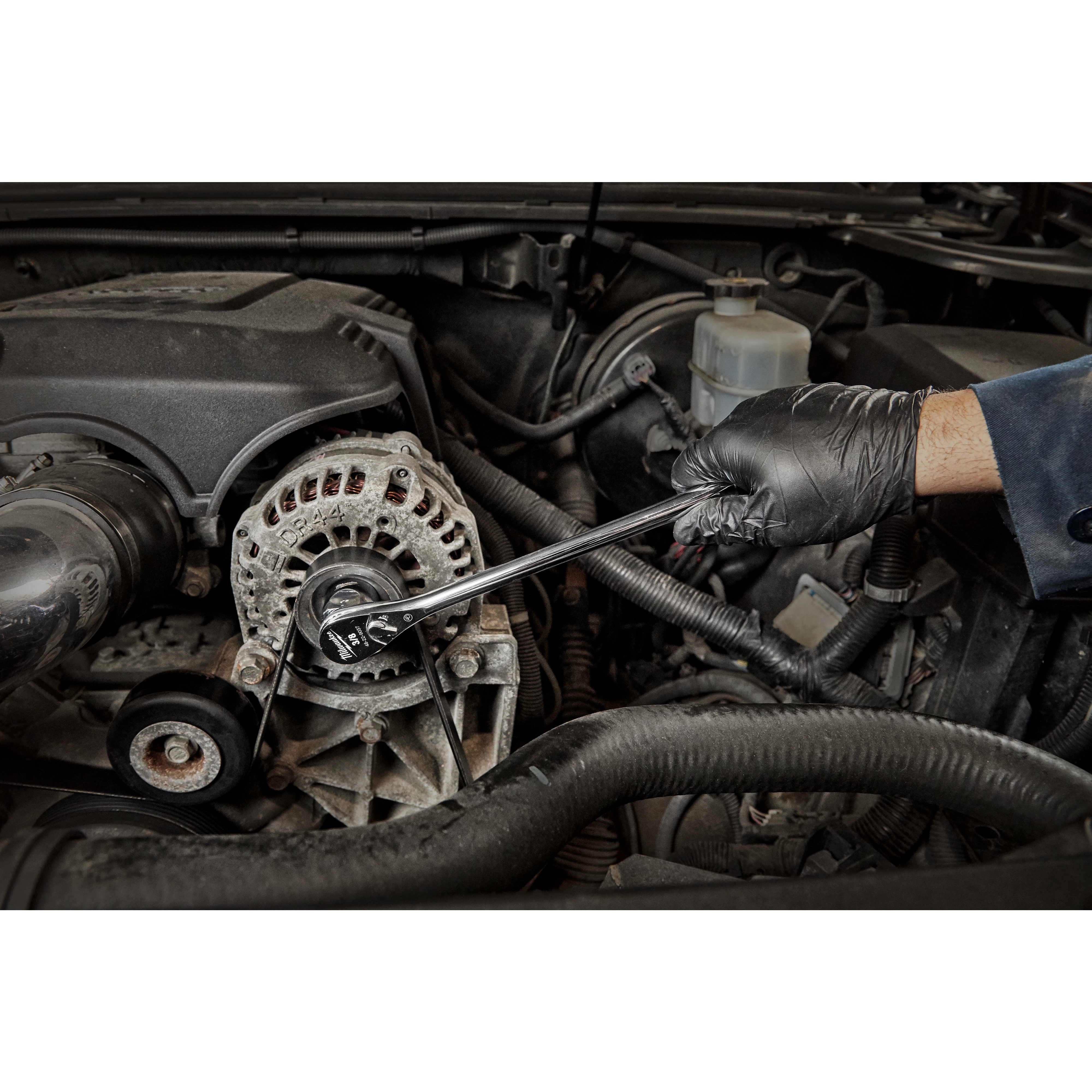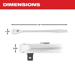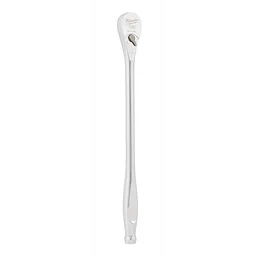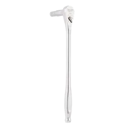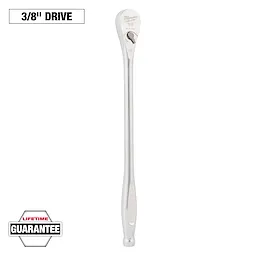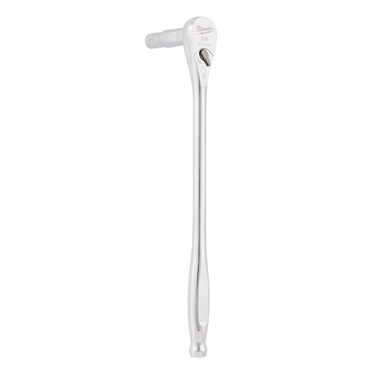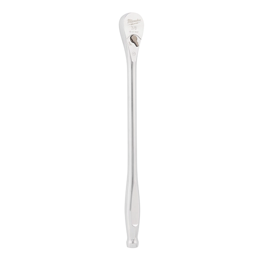 Our 3/8" Drive 12" Ratchet offers 4° of arc swing, allowing access to work in tighter spaces. The extended handle length provides you with increased leverage for stubborn nuts and bolts with a slim profile design and a flush directional lever for better accessibility. The all-chrome finish provides the MILWAUKEE® extended reach ratchet with easy cleaning. This ratchet is backed by our Mechanics Hand Tools Lifetime Guarantee.