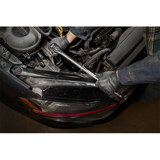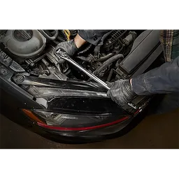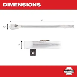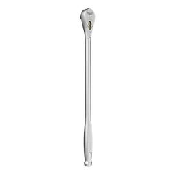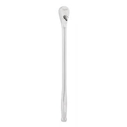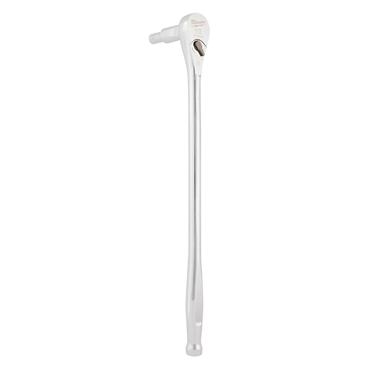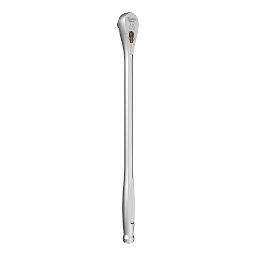 Our 1/2" Drive 18" Ratchet offers 4° of arc swing, allowing access to work in tighter spaces. The extended handle length provides you with increased leverage for stubborn nuts and bolts with a slim profile design and a flush directional lever for better accessibility. The all-chrome finish provides the MILWAUKEE® extended reach ratchet with easy cleaning. This ratchet is backed by our Mechanics Hand Tools Lifetime Guarantee.