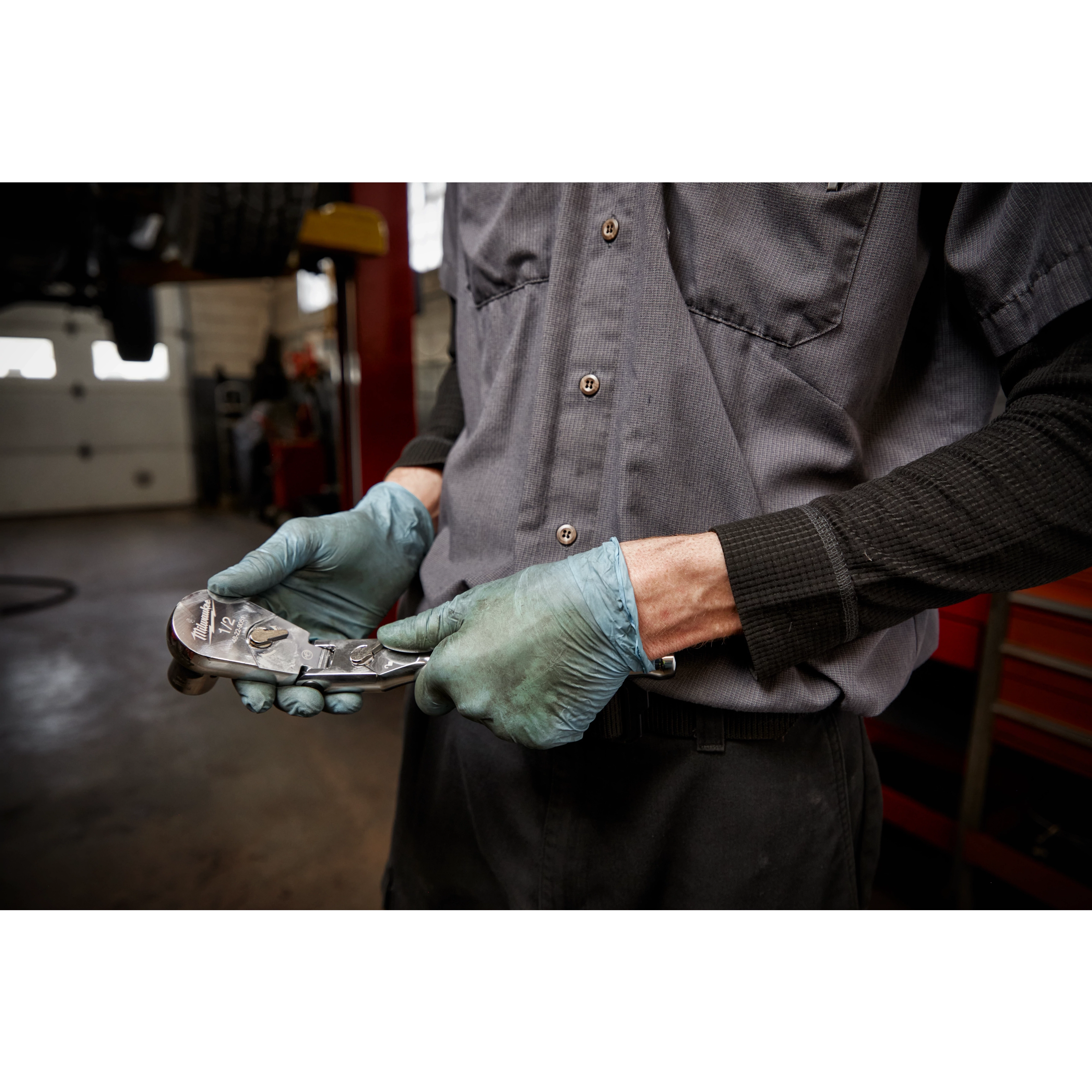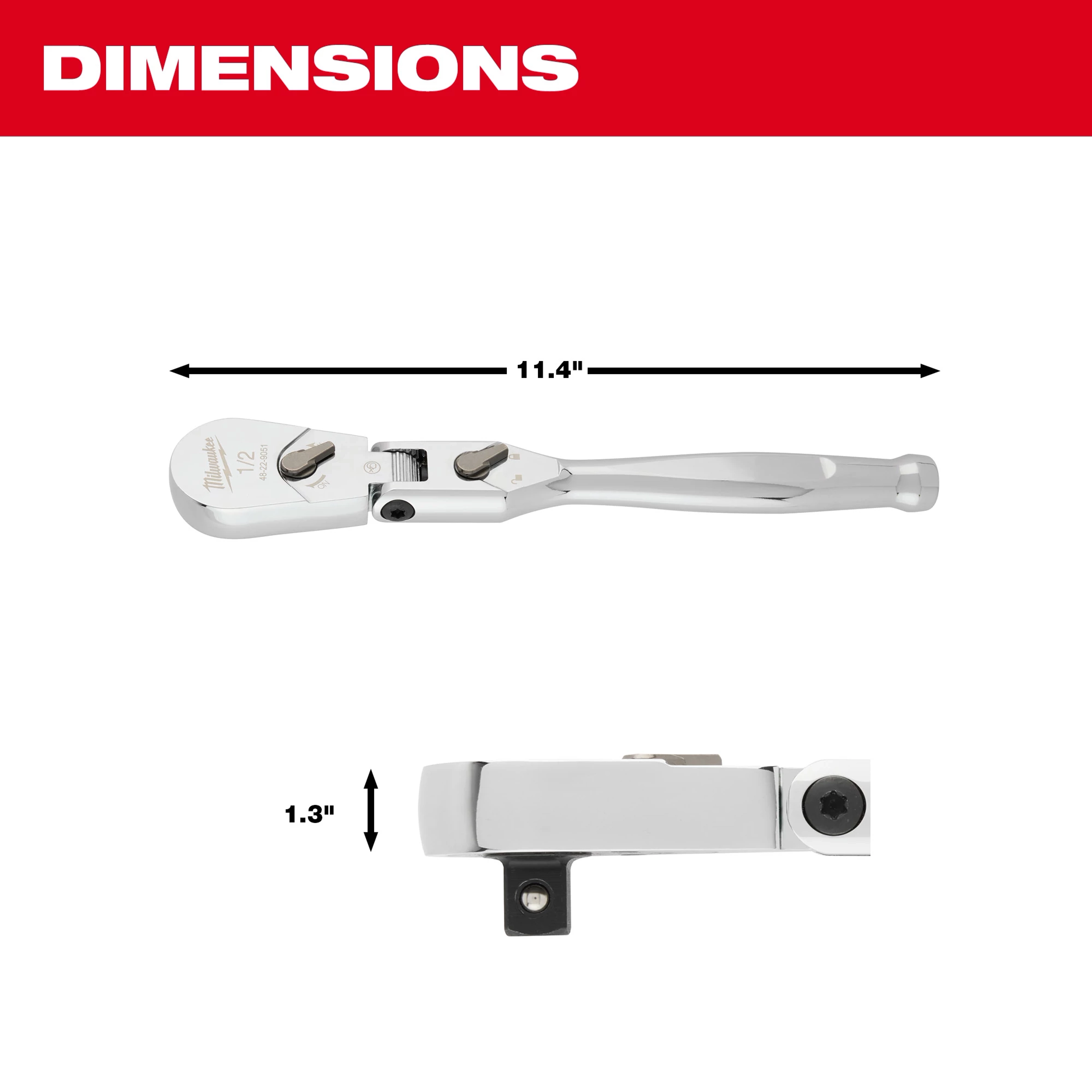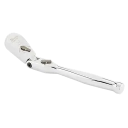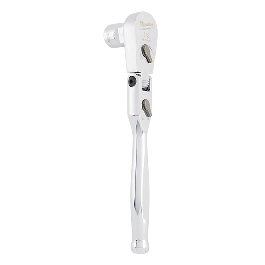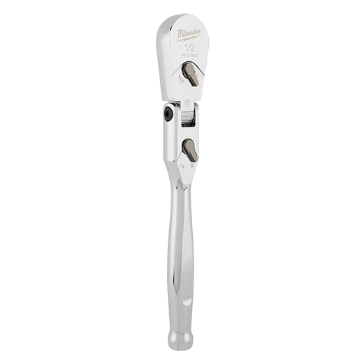 Our 1/2” Drive 11” Flex Head Ratchet with a 4⁰ arc swing provides you with better access and is more adaptable to working in spaces with different angles. The ratchet head can be locked into 11 unique positions or left unlocked for free movement during use. The slim profile head and flush directional and locking levers offer more accessibility in tight spaces. The all-chrome finish makes cleaning the MILWAUKEE® flex head ratchet easy. We back this ratchet with our Mechanics Hand Tools Lifetime Guarantee.