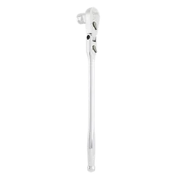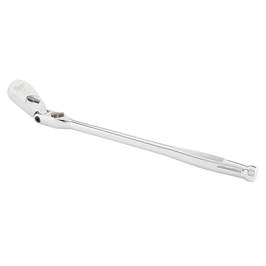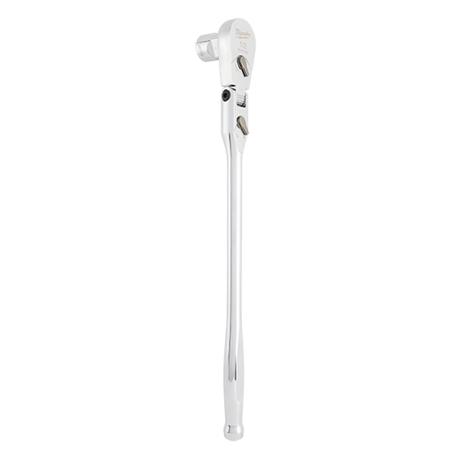 Our 1/2” Drive 18” Flex Head Ratchet with a 4⁰ arc swing provides you with better access and is more adaptable to working in spaces with different angles. The ratchet head can be locked into 11 unique positions or left unlocked for free movement during use. The extended handle length offers you increased leverage for stubborn nuts and bolts while the slim profile and flush directional and locking levers offer more accessibility in tight spaces. The all-chrome finish makes cleaning the MILWAUKEE® extended handle flex head ratchet easy. We back this ratchet with our Mechanics Hand Tools Lifetime Guarantee.
