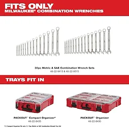 Trays Fits the Following Milwaukee Metric Combination Wrenches: 8mm, 9mm, 10mm, 11mm, 12mm, 13mm, 14mm, 15mm, 16mm, 17mm, 18mm, 19mm, 20mm, 21mm, 22mm
