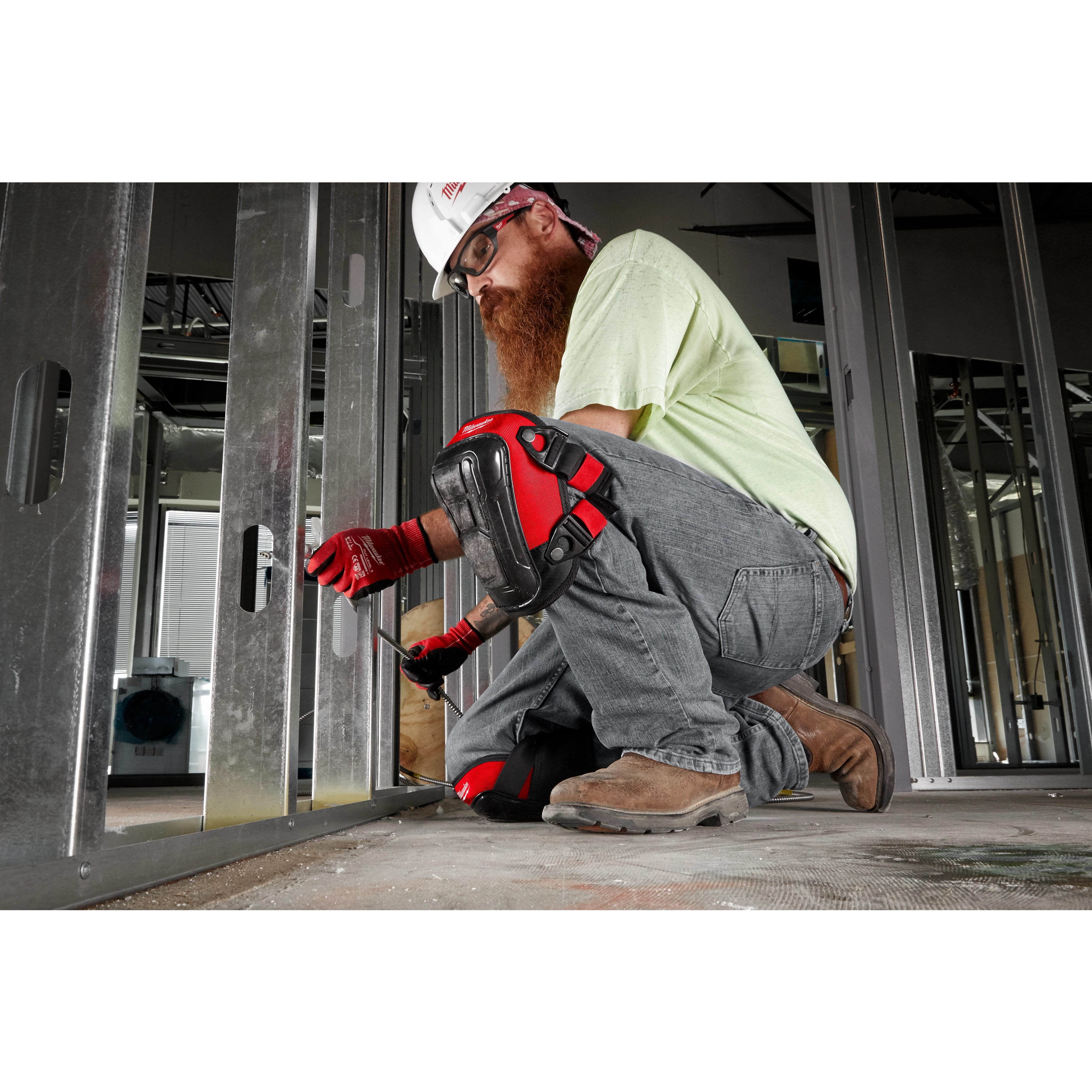 Our Dynamic Knee Pad with Wide Strap provides you with a durable puncture-resistant cap for longer life. These professional knee pads are constructed with pressure-reducing foam that retains its shape for lasting comfort. Additionally, they feature layered gel to absorb pressure and support your knees. Designed with a robust cap, these MILWAUKEE®  knee pads adapt to various surfaces and movements, ensuring longevity and performance.