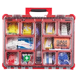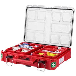 Our PACKOUT™ Class B Type III First Aid Kit is part of the most versatile, durable, modular storage system. Our first aid kit's impact-resistant body keeps contents safe from drops and bumps on the jobsite. An IP65 rated weather seal protects bandages, adhesives, antibiotics, and other essential medical supplies from rain and other jobsite debris. Our jobsite first aid kit's no-travel bin seals to keep all contents secure and in their proper place. The MILWAUKEE® PACKOUT™ Organizer comes with 193 essential first aid items tailored to the most common injuries you encounter on the jobsite. The transparent lid of the organizer seals the contents from migrating and shifting during transport. Heavy duty latches and reinforced hinges ensure that the organizer keeps the contents contained and protected.
