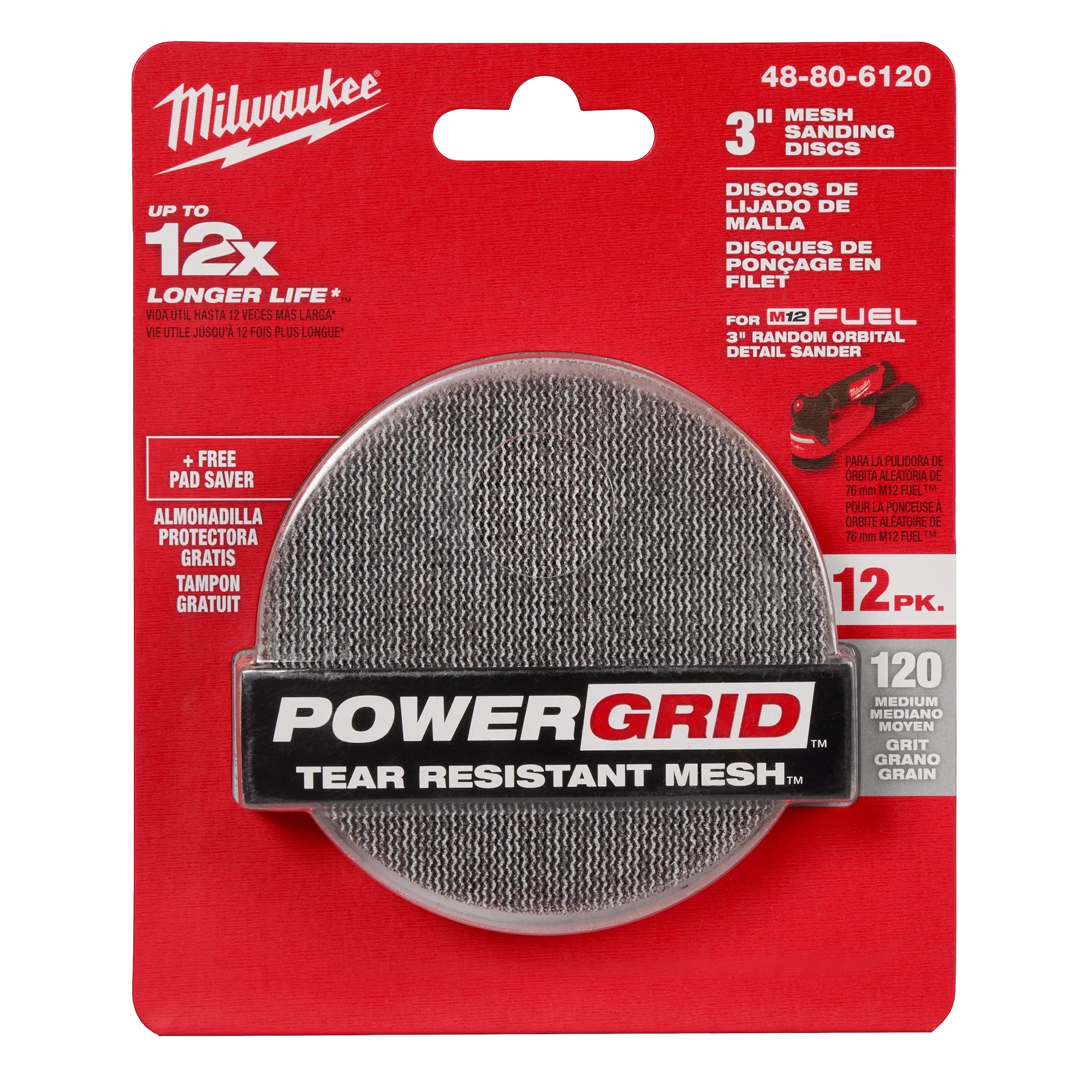 3” 120 Grit Mesh Sanding Discs with POWERGRID™ Tear Resistant Mesh – (12 PK) + Pad Saver