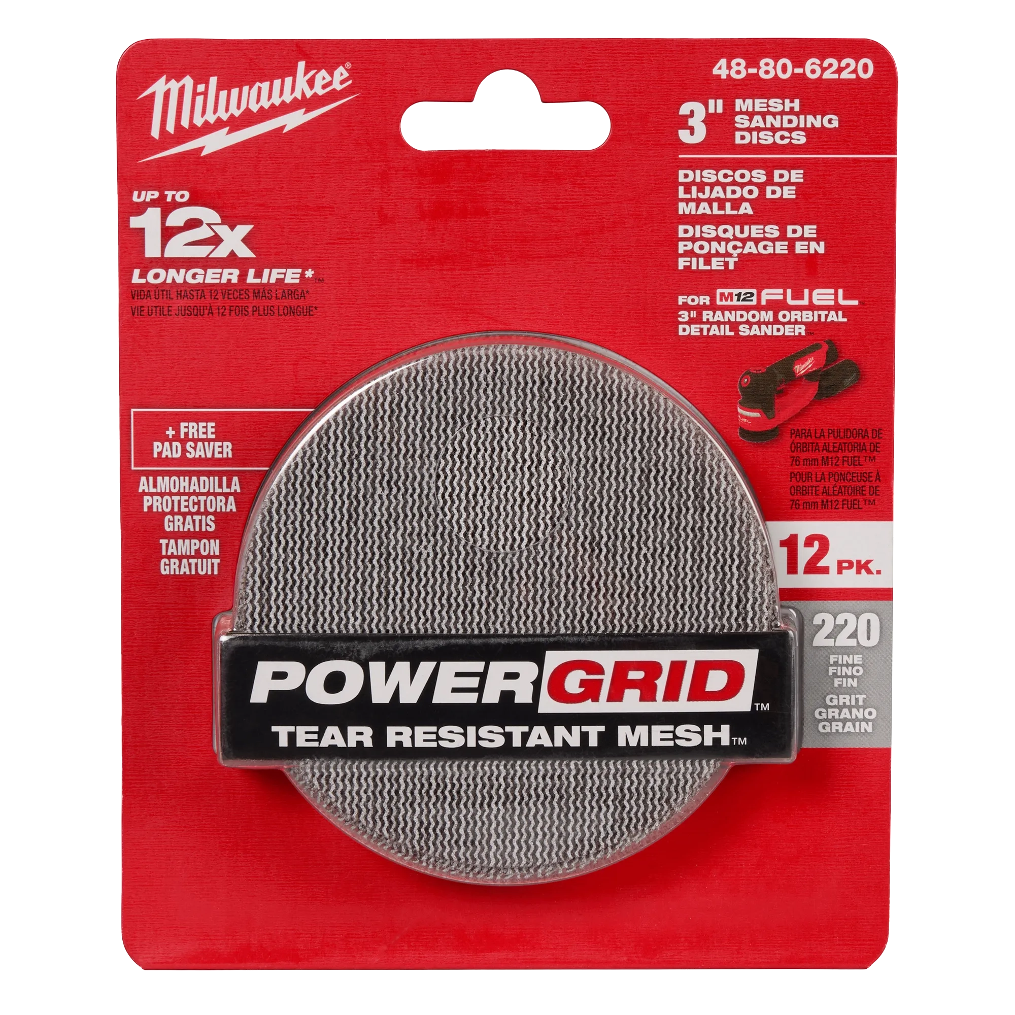3” 220 Grit Mesh Sanding Discs with POWERGRID™ Tear Resistant Mesh – (12 PK) + Pad Saver