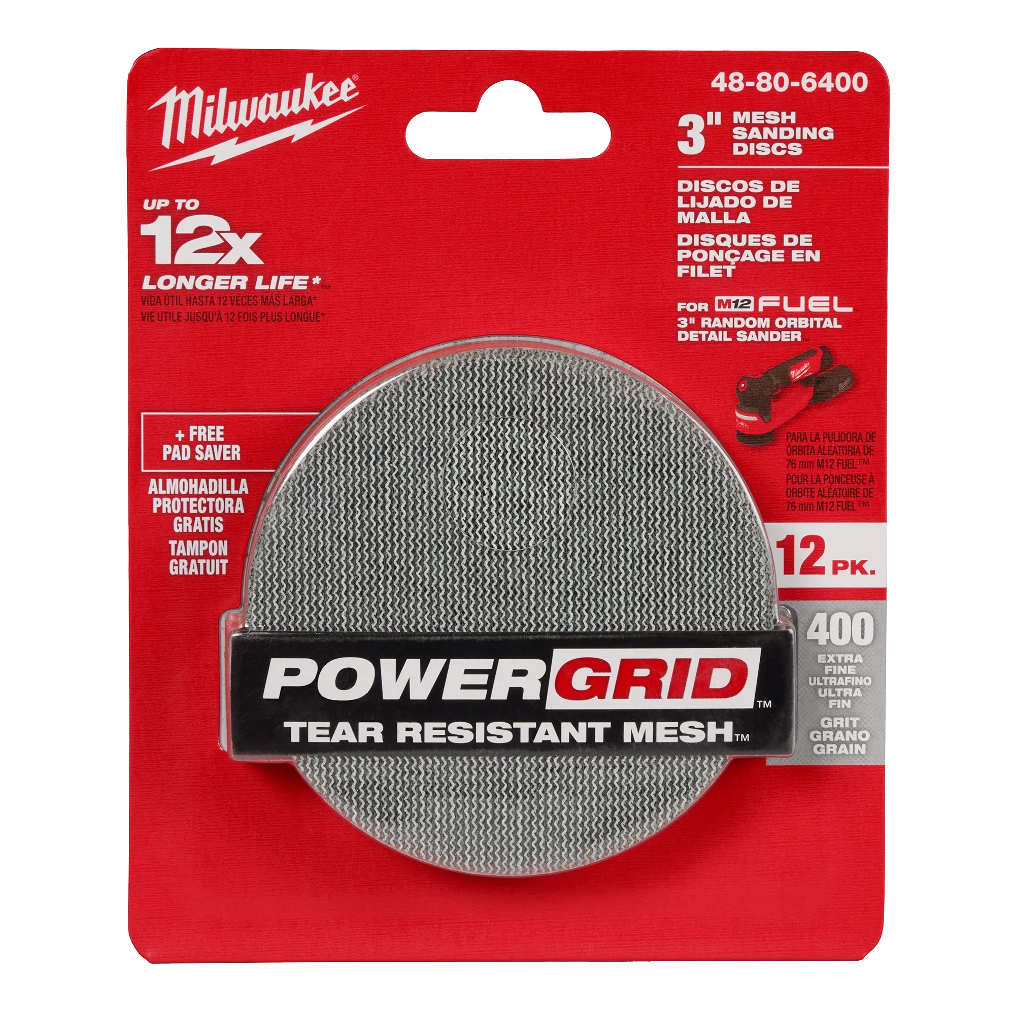 Includes: (12) 3” 400 Grit Mesh Sanding Discs, (1) Pad Saver