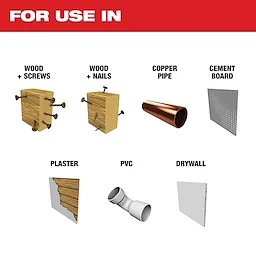 For use in Multi-Material applications: wood, screws, nails, cement board, plaster, and more