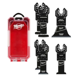 Our OPEN-LOK™ 6 PC Oscillating Multi-Tool Blade Set provides you with an assortment of blades for multi-material, hardwood, and clean wood cutting applications. This set includes a NITRUS™ Carbide Extreme Metal blade that provides the ultimate cutting experience, delivering the fastest cutting and longest life on the job site. The extreme metal NITRUS™ Carbide multi-tool blade delivers up to 2X more cuts than Carbide Teeth blades - capable of hundreds of cuts in deck screws. The set includes TITANIUM CHARGED™ Bi-Metal blades with an optimized titanium blend for maximum wear-resistance and up to 15x longer life vs. high carbon steel (HCS) blades. The bi-metal multi-tool blades are ideal for wood with nails, PVC, and drywall. The Triple-Ground Japanese Tooth hardwood blades deliver up to 2X faster cuts than the previous MILWAUKEE® HCS blade and feature a PRO-CURVE™ cutting edge for greater control and are ideal for fast, clean cuts in hardwood and can also be used in clean wood, PVC, and drywall. The set also includes a high carbon steel (HCS) blade designed with aggressive, edge-ground teeth for fast wood cutting. These blades feature a reinforced Universal Fit OPEN-LOK™ anchor for better strength & control and allow for quick blade changes across 100+ multi-tools. Not compatible with Starlock tools. The set is organized in a hard case for compact and convenient storage. MILWAUKEE® oscillating multi-tool blades are designed and made in the USA with global materials.