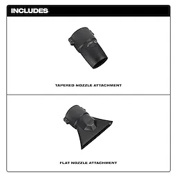 The Blower Nozzle Attachment Kit includes one: Flat Nozzle Attachment and one: Tapered Nozzle Attachment
