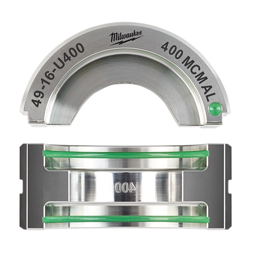 The 400 MCM Aluminum 6T U Style Die is the Most Accurate Way to Crimp, producing cULus classified crimps according to the UL 486A-B classification standards for #8 - 750 MCM Copper & Dual Rated Anderson, Blackburn® Burndy, Ilsco, Panduit, Penn-Union and Thomas & Betts Connectors. MILWAUKEE® U Style Dies feature vivid wire size markings and industry-standard color markings. The aluminum crimper die also imprints wire size onto the connector after crimp completion. The crimping die is made for commercial electricians and is designed to provide you with ease of use and easy inspection. For use with our M18™ Force Logic™ 600 MCM Crimper (2679-20) and M18™ 750 MCM U Style Crimping Jaw (49-16-U111).