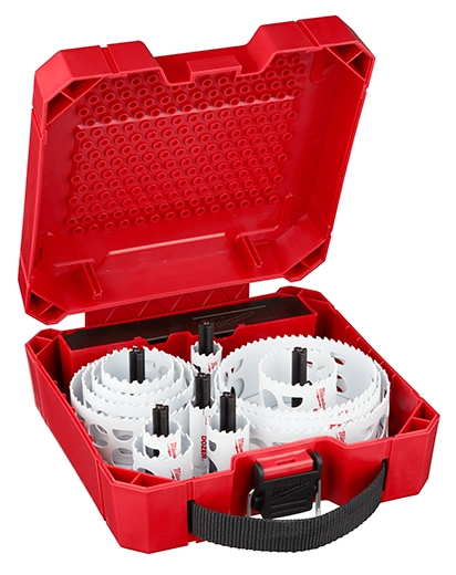Our HOLE DOZER™ 21-Piece General Purpose Hole Saw kit features a new 3.5 TPI tooth design that offers you the longest life in metal applications. These MILWAUKEE® HOLE DOZER™ Bi-Metal Hole Saws feature the industry's only Lifetime Tooth Break Warranty and can take on all general purpose applications, making them the most durable hole saws. Our ALL-ACCESS SLOTS solve the frustration of plug removal, making you more productive with less downtime between holes. The new slot design also gives you increased pilot visibility for accurate placement and faster chip ejection keeping your cut cool. HOLE DOZER™ Thermoset Coating allows for faster cutting and is optimized for cordless tools, delivering you 25% more holes per charge. Our HOLE DOZER™ Bi-Metal hole saws are proudly made in the USA. This hole saw kit also includes a case, which offers you enhanced customization capability thanks to the interchangeable pegs. You can store arbors, pilot bits, and more in the removable accessory box or remove it entirely to create more space for hole saws. Each Milwaukee Hole Saw Case features a reinforced grid design on the top and bottom, plus heavy-duty latches, securely storing the hole saws within this durable, hard case design.