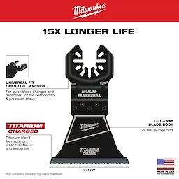 TITANIUM CHARGED™ bi-metal for up to 15X Longer Life vs High Carbon Steel Blades