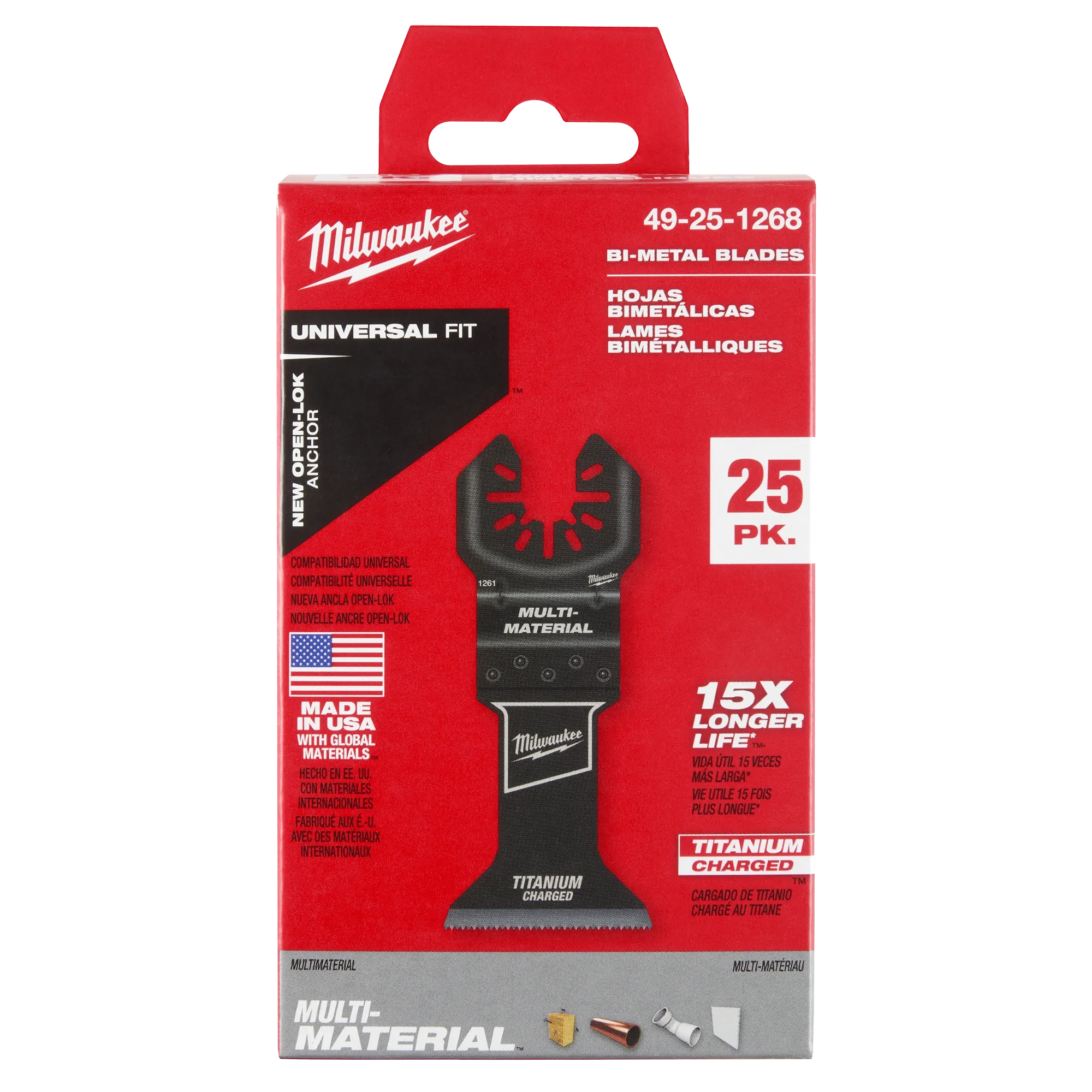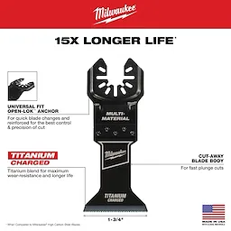 TITANIUM CHARGED™ bi-metal for up to 15X Longer Life vs High Carbon Steel Blades