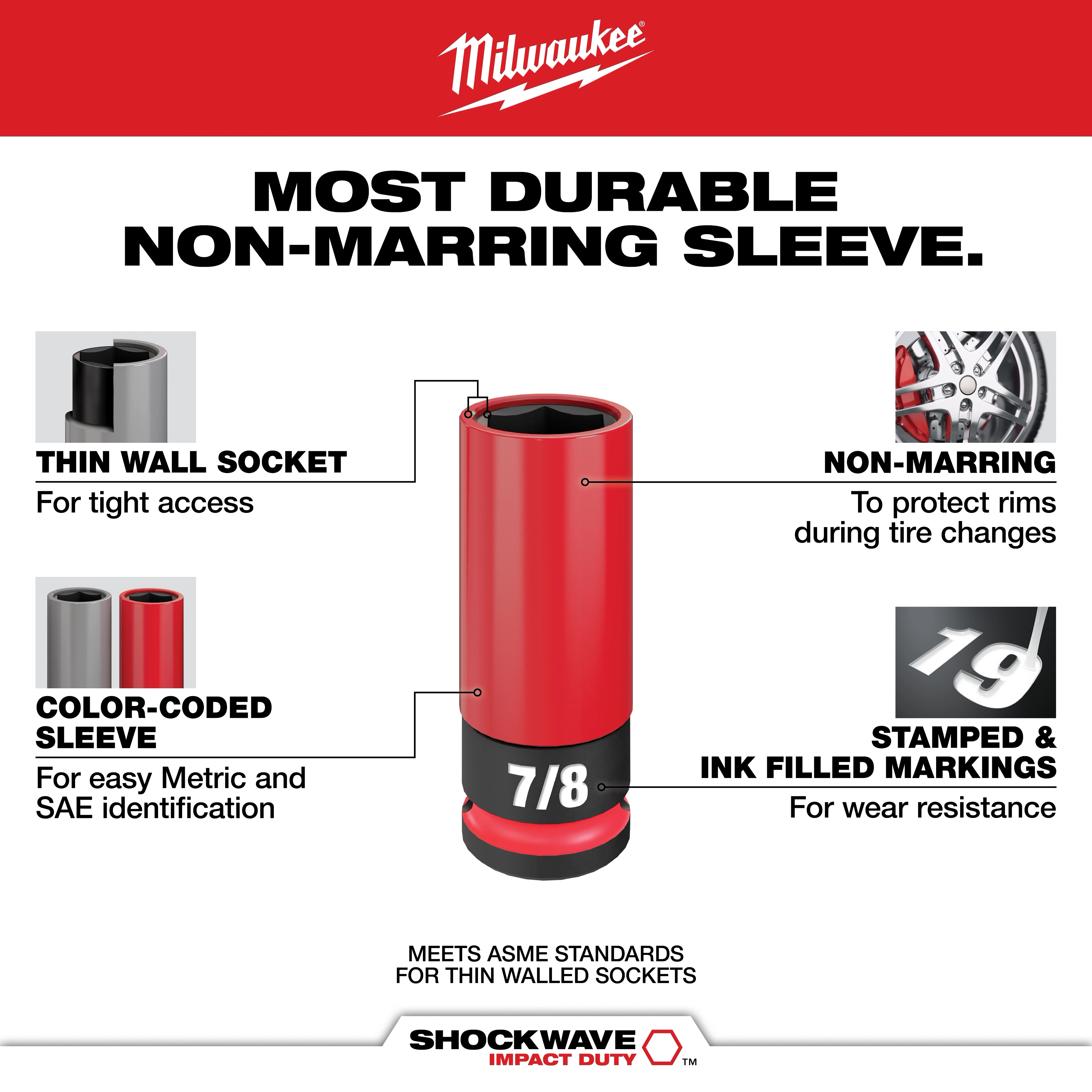 Sleeves are color coded Gray for Metric sizes and Red for SAE sizes to ensure easier socket selection