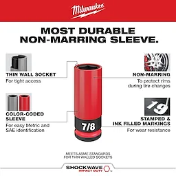 Sockets are Thin Walled for easy access in tight wheel assemblies