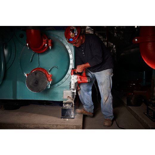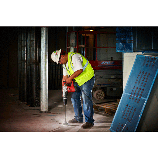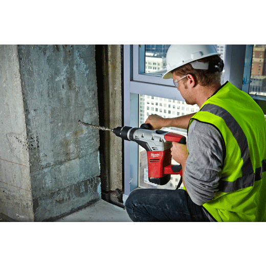 Get optimal power for concrete drilling and chipping applications. The 1-9/16” Spline Rotary Hammer offers a heavy-duty 5.5 ft-lbs of impact energy, plus 450 RPM and 3,000 BPM for fast, solid performance, even when drilling in hard aggregate. Constant Power Technology (CPTTM) ensures consistent drilling power for the toughest applications handled by electrical, mechanical, plumbing, HVAC and general construction contractors. A 12-position chipping adjustment lets you maintain the ideal hammer position while chipping in any orientation. A mechanical clutch protects the motor when the bit binds, and two-mode operation offers maximum versatility regardless of the application. The tool comes with a side handle and carrying case.