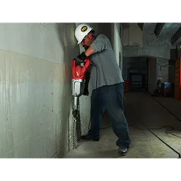 Perform a variety of digging and drilling jobs on floors or the ground with this heavy-duty inline design. The 2” SDS-Max Drive Rotary Hammer delivers 19.9 ft-lbs of blow energy for drilling large holes in concrete or asphalt, bushing, driving ground rods, scraping floors, digging and tamping. The inline design offers more comfortable operation, and the soft-grip side handle can be attached in three positions – plus the rear switch handle – to minimize bending. A system of anti-vibration absorption and reduction components decreases operator fatigue. Sophisticated electronic feedback offers consistent operation and overload protection. This robust electric hammer features a variable-speed dial for optimum control, a service-reminder light and easy access for maintenance. You can position chisels more efficiently with the SDS-max bit holder system. The tool uses standard SDS-max accessories, and comes with a carrying case.