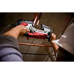 The new Deep Cut Band Saws deliver 2X more durability, best-in-class power at 11 Amps, revolutionary cut visibility and the industry’s largest cut capacity at 5" by 5". These Band Saws still deliver on the heritage of long-term reliability and performance that make Milwaukee Band Saws the standard in industrial metalworking, but now feature a new, exclusive Job Site Armor™ Technology and all metal direct drive system that provide game-changing durability. The Job Site Armor™ Technology is made of a proprietary composite material and has crush zone barriers that provide long lasting rugged protection. The all metal direct drive gearing system delivers maximum tool life, while requiring less servicing than a chain drive. In addition, a gear protecting clutch extends gear and motor life by absorbing high impact forces caused by blade lock-ups and a new debris protection system delivers longer pulley life by removing debris during use. The new Band Saw's slimmer motor housing increases user line of site delivering superior cut accuracy and revolutionary cut visibility, while a new balanced body design allows tool to rest naturally and comfortably in the users hands. At 14.5 Lbs., this lighter weight design delivers more control over the tool and less fatigue at the conclusion of the work day. Another innovative feature is the tool-free locking adjustable shoe, which is a button actuated tool-free design that allows the user to quickly adjust from an extended shoe to no shoe in seconds. Band Saw Blade Sold Separately.
