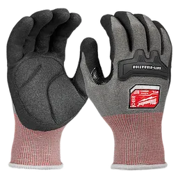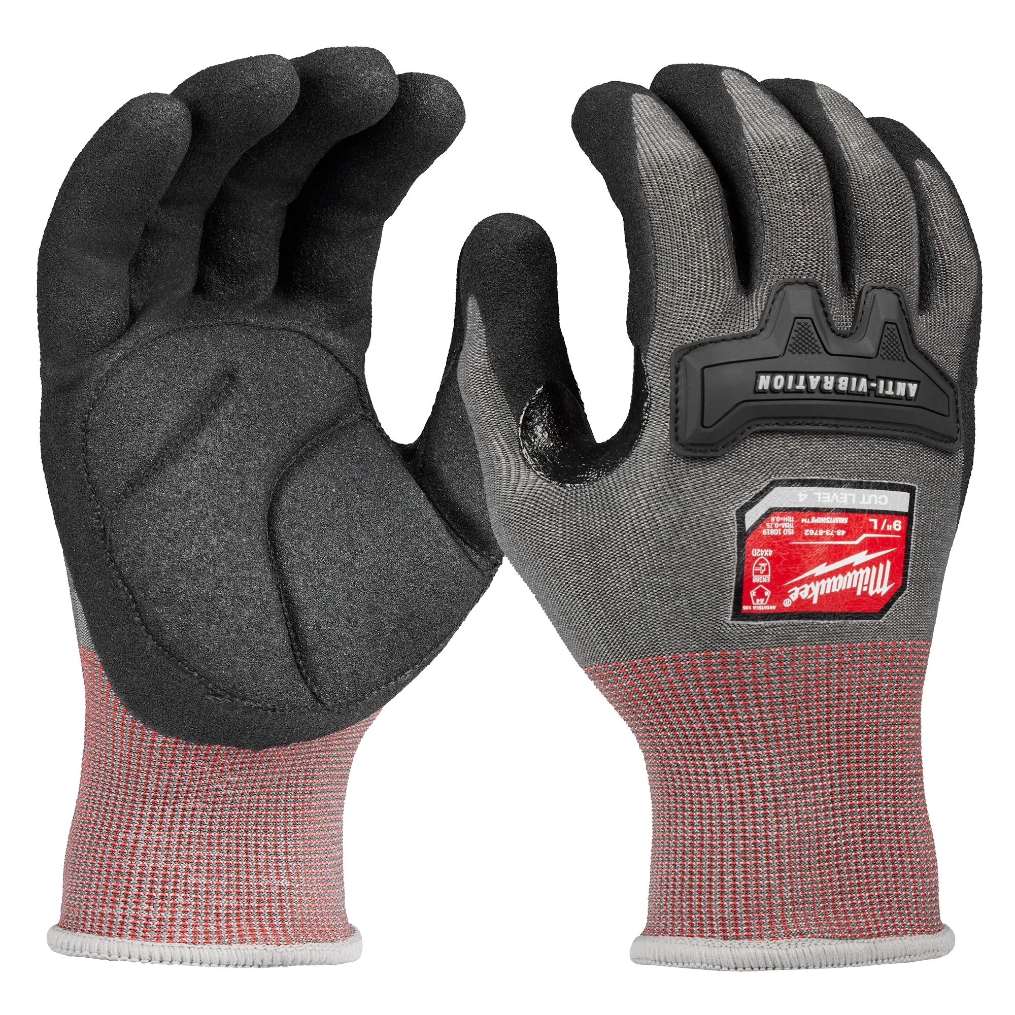 Our Anti-Vibration ANSI/ISEA 105-2016 Cut Level 4 High-Dexterity Nitrile Dipped Gloves protect our users’ hands from harmful vibrations while operating power tools. These Anti-Vibration Gloves provide users with the best in class full-hand vibration reduction* while still maintaining dexterity and comfort. The 18 gauge material provides total hand mobility when working with small fasteners. The long-lasting nitrile dip makes sure these gloves hold up to abusive jobsite conditions. The gloves also have a reinforced nitrile coating between the thumb and index finger for enhanced durability in high wear points. MILWAUKEE® SMARTSWIPE™ fingertips provide you with full access to your touchscreen devices without removing the gloves. All of the Milwaukee® Gloves feature a color-coded wristband for easy cut-level identification. *Compared to knit and dip anti-vibration gloves when measuring transmission of the ISO 10819 vibration profile to the palm and fingers