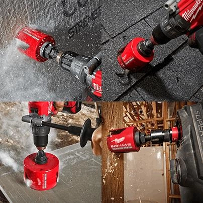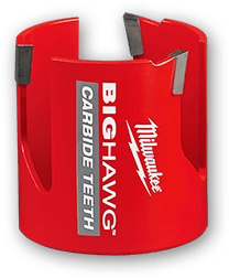 MILWAUKEE® BIG HAWG™ with Carbide Teeth is first-to-market in providing extreme life and durability in both nail-embedded wood and abrasive material applications. Utilizing advanced carbide technology to completely redesign the tried and true BIG HAWG™ hole saw, the new BIG HAWG™ with Carbide Teeth gives users 50x life in demanding applications with the ability to cut 1000+ more nails. 10X larger carbide teeth rip through materials 5X faster than any hole saw on the market, while oversized slots make for easy plug removal and chip ejection.