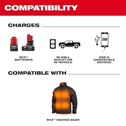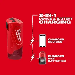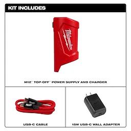 Our M12™ TOP-OFF™ Power Supply and Charger provides M12™ battery users a 2-in-1 battery and personal device charging experience whether on or off the jobsite. The power source pairs with any M12™ battery providing 15W of power to charge personal devices, including phones, tablets, headphones, or other small electronics. This next generation M12™ Power Supply provides up to 50% faster personal device and M12™ battery charging with it’s bi-directional USB-C port to increase productivity throughout the day. It can also be used to power all M12™ Heated Gear for increased functionality. Included with the power supply is a 2ft USB-C braided cable and USB-C wall adapter.
