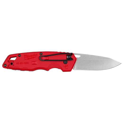 Our FASTBACK™ Folding Knife features a press and flip mechanism providing you easy, one-handed opening. The folding knife has a stainless steel drop-point blade that stays sharp. The pocket knife also features a liner lock that secures the blade while also allowing you to easily close it when done. The folding pocket knife has a durable belt clip that reduces pocket tearing and includes a tether-ready lanyard hole.