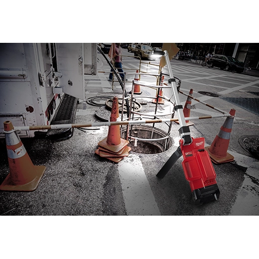Our M18™ ROCKET™ Dual Pack Tower Light w/ONE-KEY™ can get light to any environment on any terrain with its 3 leg position options paired with unmatched performance and all day runtime. Whether you need quick deployment or maximum stability, our light has a 7 second setup and 5'5" deployment height. Our tower light provides maximum portability with its 22” length stowed size, making it perfect for carrying long distances to a scene. The rotating light head offers 5400 lumens of TRUEVIEW™ High Definition Output and can run up to 26 hours with its dual battery design giving you the ability to use one or two M18™ batteries. It can withstand the harshest environments with its sealed battery compartment, making it waterproof and dustproof. The Dual Pack Tower Light is ONE-KEY™ capable allowing you to track and set runtimes for unmatched customization. Its high quality LEDs never need to be replaced and are backed by a limited lifetime warranty. MILWAUKEE® ROCKET™ Tower Lights are designed to deploy in seconds and built to adapt to any job site environment. The LED light towers supply both task and area lighting as well as provide light overhead to reduce shadows in the workspace.