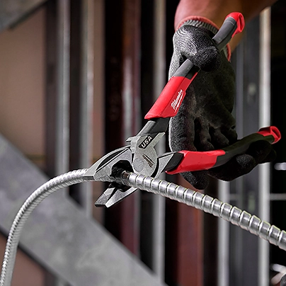 Our Milwaukee® 9” Lineman’s Pliers (USA) deliver the easiest cuts and a lasting edge for the professional user. Our pliers are designed with an optimized pivot point to provide the best leverage for tough cuts through materials like ACSR, hard wire, and soft wire. Our cutting pliers feature laser-hardened edges and teeth for a long cut life and maximum grip. Our Lineman’s Pliers are engineered to deliver the smoothest open and close experience from the start with no break-in period required. For additional versatility, our Lineman’s Pliers include a reaming head for ½-inch to 1-inch conduit and a fish tape puller. Our pliers are tether ready and offered in both dipped grip with a split-ring hole and comfort grip with a lanyard hole. Our Milwaukee Lineman’s Pliers are made in the USA with best-in-class manufacturing technology and USA-sourced materials, including durable, press-forged steel, and are backed by a complete Lifetime Guarantee.