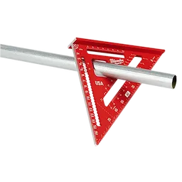 Our 180mm Metric Rafter Square has a stronger frame and is the most versatile rafter square. Scribe notches from 25mm-145mm allow you to easily and accurately rip lumber. A 25mm cutout in the rafter square helps prop pipe, making it easier to cut on the job site. A reinforced frame gives you more durability, while high visibility laser etched markings make the rafter angle square easier to read.