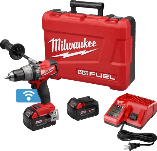 The M18 FUEL™ Hammer Drill features a POWERSTATE™ Brushless Motor that delivers 1,200 in-lbs of peak torque and up to 2,000 RPM, providing faster drilling speed under heavy load to increase productivity. At only 7.60” in length, it is the Most Compact drill in its class, reducing fatigue when used for extended periods of time and allowing access to tight work spaces. REDLINK PLUS™ intelligence ensures maximum performance and protection from overload, overheating and over-discharge. REDLITHIUM battery packs deliver more work per charge and more work over the life of the pack than the competitors. Compatible with ONE-KEY™, this is the industry’s first Hammer Drill that wirelessly connects to a smart phone to Customize, Track and Manage a tool’s performance and location. Unlimited Tool Customization allows you to connect to the tool and access predetermined set-ups for specific fasteners and materials, or have complete control over output speed and power for the specific application at hand. Once the desired output performance is reached, the custom profile is then saved to the memory of the tool and the connection to the smart phone is no longer necessary. The tool’s memory supports up to 4 custom profiles that can be easily accessed with the touch of a button on the tool. Your custom profiles are also saved in the cloud so that they can be accessed at any time.Integrated Tool Tracking, also available through ONE-KEY™, provides full visibility to how and where tools are being used across your network of jobs and users. The app will track all ONE-KEY™ compatible devices within 100 ft range of your phone. By building the functionality into the tool, not the battery, all devices are trackable even if the battery is not charged or on the tool. The app will automatically keep records of the last time a tool was within range of the app, allowing you to pinpoint missing tools quicker and increase accountability of your crew. If you’re having trouble locating a lost tool, expand your search with the help of anybody with the ONE-KEY™ app. By opting in, when any phone with the app comes within 100 ft of your tool, you will receive an updated location.