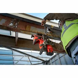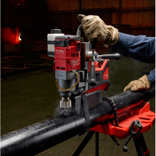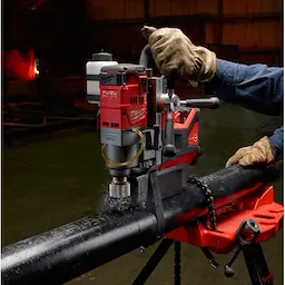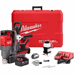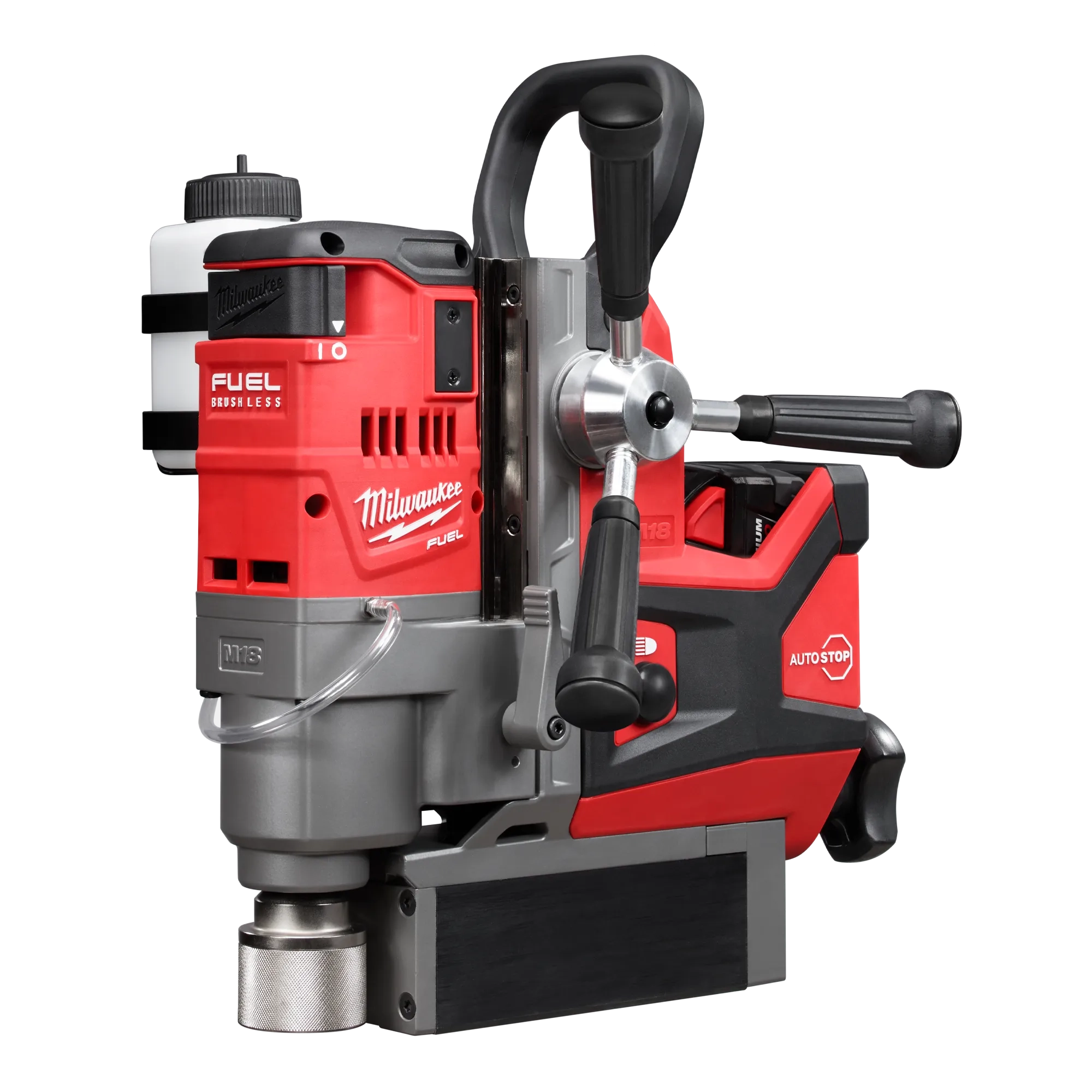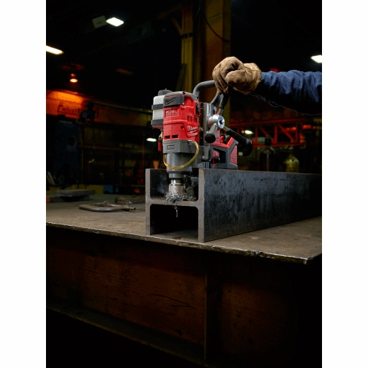 The M18 FUEL™ 1-1/2” Magnetic Drill drills faster than the number one corded competitor, delivers the strongest magnetic hold on 1/4” steel providing a safer drilling environment in this material, and drills over (40) 13/16” holes per charge.The M18 FUEL™ 1-1/2” Magnetic Drill delivers safer drilling on ¼” steel by providing the industry’s strongest holding force on this material. By utilizing permanent magnets, the magnetic base operates without electricity; ensuring that the magnet does not deactivate if the battery is drained. Equipped with Auto-Stop lift-off detection, power to the motor is automatically cut if excess rotational motion is detected while drilling.Powered by a Milwaukee POWERSTATE™ Brushless Motor, both drills are faster than their corded counterparts, and deliver the same 1-1/2” annular cutter capacity. REDLINK PLUS™ Intelligence is the most advanced electronic system on the market, preventing damage to the tool and battery caused by overloading or overheating. REDLITHIUM™ XC5.0 batteries provide over (40) 13/16” holes in ¼” steel, while delivering the most durable pack construction on the market, and over 2X more recharges than the leading competitor.