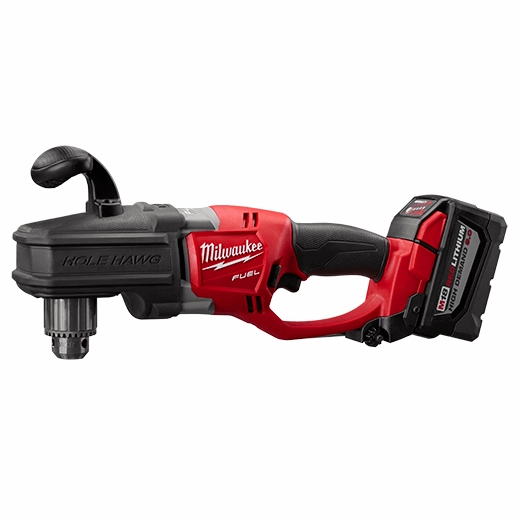 The M18 FUEL™ HOLE HAWG® 1/2" Right Angle Drill from Milwaukee drills faster than the original corded HOLE HAWG®, delivers over 300 7/8" Holes Per Charge, and is over 30% lighter weight than its corded predecessor. Optimized for electricians, the M18 FUEL™ HOLE HAWG® is the first cordless tool of its kind, delivering game-changing productivity for professionals drilling with augers up to 1-1/4" and self-feed bits up to 2". The POWERSTATE® brushless motor delivers better performance than corded drills, especially under heavy load. REDLINK PLUS™ Intelligence is the most advanced electronic system on the market, preventing damage to the tool and battery caused by overloading or overheating. The M18™ REDLITHIUM™ HIGH DEMAND™ 9.0 Battery Pack delivers up to 5X more run-time, 35% more power, and runs 60% cooler than standard 18V lithium-ion batteries. It maintains full power and runs substantially cooler through heavy applications, allowing users to push their cordless tools harder and longer than ever before. The M18™ REDLITHIUM™ HIGH DEMAND™ 9.0 battery is fully compatible with 100+ M18™ tools.