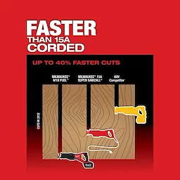 Purposely built for the M18 FUEL™ SUPER SAWZALL™ to generate the power and performance of a 15A corded reciprocating saw