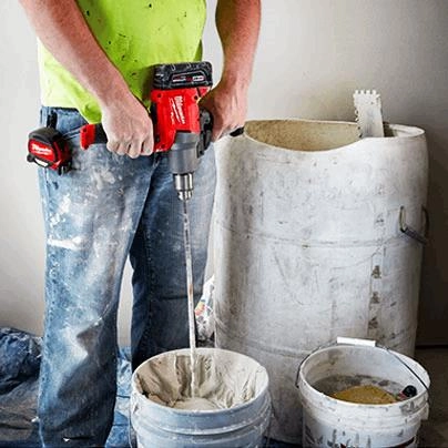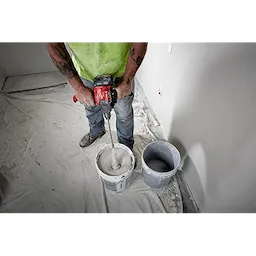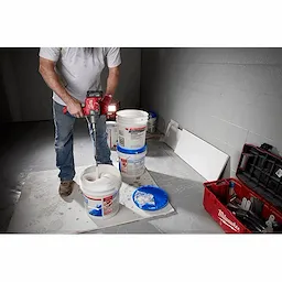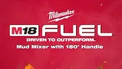 The M18 FUEL™ Mud Mixer with 180° handle is the industry’s first dedicated cordless solution that delivers the performance and durability to fully replace corded mixers. With the POWERSTATE™ Brushless motor it has the power to mix heavy compounds, such as concrete and mortar. Using our REDLINK™ intelligence the variable speed dial, the variable speed trigger and the lock on button combine to give the user ultimate control for a consistent mix and cleaner working environment. With the M18 REDLITHIUM™ battery the user can mix up to 15, five gallon buckets on one 5.0Ah battery. The 180° adjustable handle is designed to allow every user to optimize the handle position for their comfort. This Milwaukee cordless solution increases productivity by eliminating the need for cords and allows the user to mix the material at the workspace where it is being applied.