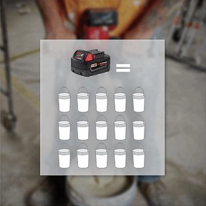 • Up To 15 Buckets Per Charge (5.0Ah battery and 5 gallon buckets)