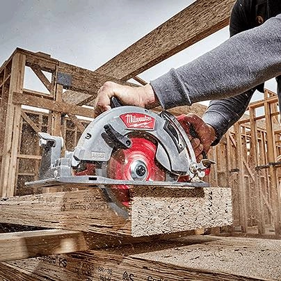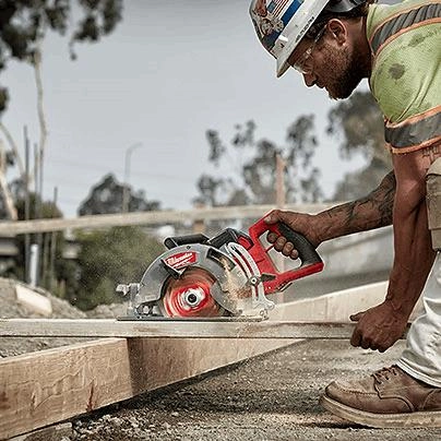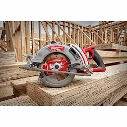 Our M18 FUEL™ Rear Handle 7-1/4” Circular Saw is designed for the professional carpenter, remodeler, and general contractor. The circular saw can Generate the Power of 15amp corded saws, cut faster than 15amp corded worm drive saws and provide you with up to 570 cuts per charge with our M18™ REDLITHIUM™ HIGH OUTPUT™ HD12.0 battery attached. The POWERSTATE™ Brushless Motor provides this worm drive style saw with 5,800 RPM and higher speeds under load, giving you corded cutting performance. REDLINK PLUS™ Intelligence ensures you achieve maximum tool performance and protects your circ saw from overload, overheating and over discharge. Our M18 REDLITHIUM™ HIGH OUTPUT™ HD12.0 battery (not included) is compatible with all M18™ tools, runs 50% cooler, and delivers you with unmatched run times and 50% more power. The cordless circular saw has an electric blade break, LED work light, and all magnesium guards and shoe, keeping you productive and providing you the durability to handle the toughest job site conditions. A multi-sized rafter hook allows you to store the handheld circular saw on different materials. The saw's gears don’t require oiling and maintenance reducing your downtime and allowing you to get jobs done faster.