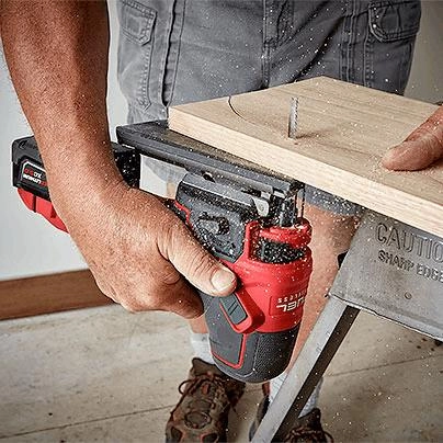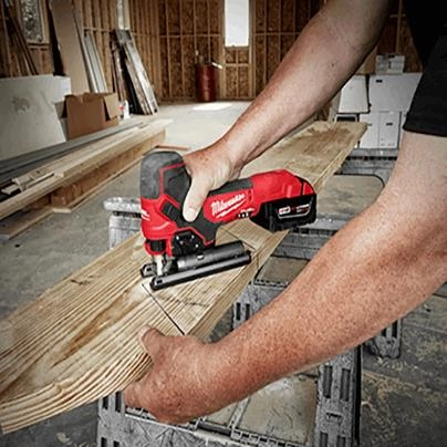The M18 FUEL™ Barrel Grip Jig Saw combines power, blade speed and precision, to provide the highest quality cuts in a wide variety of materials. The M18 FUEL™ Barrel Grip Jig Saw leverages the POWERSTATE™ Brushless Motor and REDLINK PLUS Intelligence to provide higher blade speed than corded jig saws at 3500 strokes per minute for clean controlled cuts with minimized chipping or bucking. Leveraging the M18™ REDLITHIUM™ XC5.0 battery the M18 FUEL™ D-Handle Jig Saw provides up to 105 linear feet of cutting in ¾” laminated particle board, delivering all day productivity with less trips to the charger. The saw features tool-less blade change, tool free bevel adjust with detents at 0°; 15°; 30°; and 45° as well as an LED light and on/off blower to keep the cut line visible while cutting.
