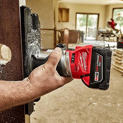 The MILWAUKEE® M18 FUEL™ Compact Router combines power, speed, and accurate depth adjustments to deliver clean accurate cuts in a variety of materials and applications. The compact router leverages the POWERSTATE™ Brushless Motor and REDLINK PLUS™ electronics. This delivers the power of corded 1.25 horsepower trim routers and best-in-class 31,000 RPM delivering users with power and speed for clean, quality cuts in hard materials. With an M18™ REDLITHIUM™ XC5.0 battery, the cordless compact router cuts up to 250ft of 3/8" roundovers in red-oak, providing users with all-day run time with fewer trips to the charger. The handheld router is equipped with a micro-adjust dial and macro-adjust button, giving users fast and accurate depth adjustments for precise work. A variable-speed dial with speeds from 10,000 to 31,000 RPM gives users control in all applications. The trim router also features a sturdy 4" sub-base plate giving users stability, and dual-LED lights illuminate their work surface. The M18 FUEL™ Compact Router is compatible with a plunge base and an offset base (sold separately).