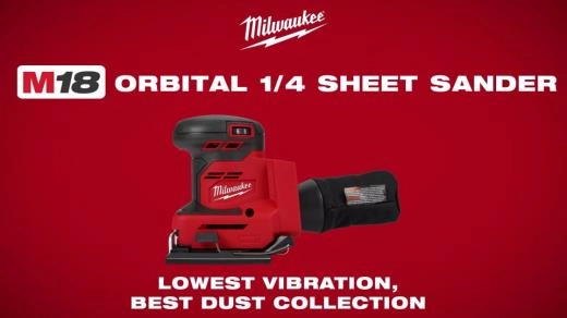 Designed for the professional carpenter, remodeler, and general contractor; our M18™ Orbital 1/4 Sheet Sander is optimized for performance and productivity on the jobsite. This M18™ Orbital 1/4 Sheet Sander offers unmatched power at 13K Max OPM and class-leading dust collection to replace your corded unit. The low vibration and ergonomics of the tool deliver enhanced comfort and user control to reduce fatigue. The two-step clamp system allows for quick and easy sandpaper changes. The variable speed dial offers adjustment from 13K to 11K OPM for precise removal throughout a wide variety of materials. Our dust collection system paired with our durable dust bag or universal hose adapter reduces clean-up time and provides a cleaner work environment.