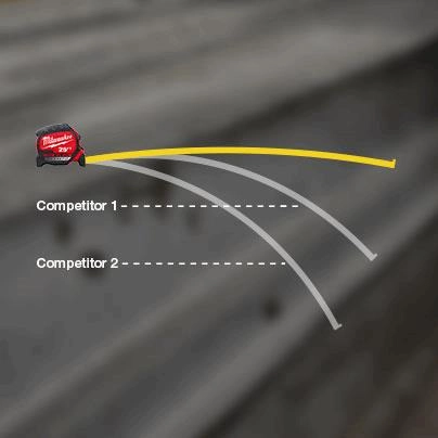 Our 16ft Wide Blade Magnetic Tape Measure has the longest, straightest standout in the industry. The 16’ of reach* allows you to take long measurements on your own and reach further on the jobsite. The blade design delivers the straightest standout*, reducing arc in the blade for efficient and accurate measuring. The magnetic hook easily attaches to EMT and steel studs. The tape measures are wear and impact-resistant with nylon bond blade protection and an additional coating on the first 6” of the blade, reducing tape tear. Built to withstand the jobsite, the measuring tapes are constructed with a 5-point reinforced frame for impact resistance.
