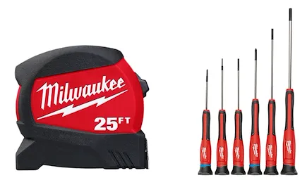 48-22-0425 (25’ COMP WIDE BLADE TAPE – 12’ SO), 48-22-2606 (6PC PRECISION DRIVERS W/ CASE)