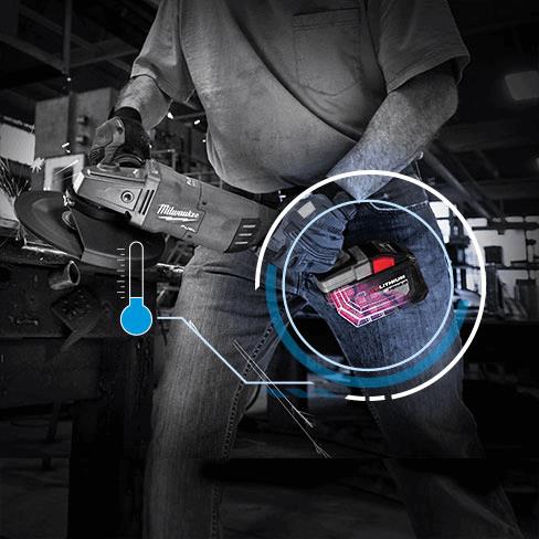 El sofisticado sistema electrónico de la batería monitorea las celdas individuales, proporciona protecciones contra temperatura y sobrecarga, y permite un rendimiento optimizado según la combinación de batería y herramienta.